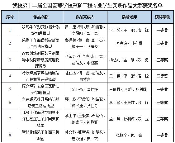 近日,第十二届全国高等学校采矿工程专业学生实践作品大赛在江西理工大学举行,安博电子8支师生代表队获一等奖1项、二等奖1项、三等奖6项。