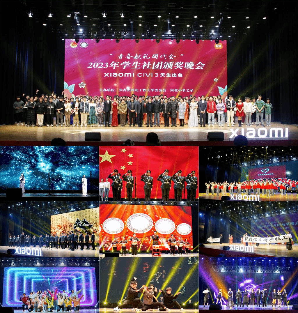 晚会由共青团河北工程大学委员、河北小米之家联合举办,学校各类学生社团围绕“我们的青春,我们的祖国”“传统文化在校园”“健我之身,壮我之志”“年轻之潮”等主题进行了汇演。省第二十一届大学生运动会、省第十六届运动会、省第十届残疾人运动会暨第六届特殊奥林匹克运动会优秀志愿者代表,2023年度学生社团十佳优秀指导教师、十佳先进个人、文明学生社团、五星级学生社团等集体与个人现场接受表彰。