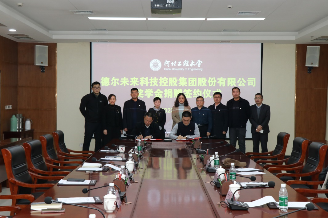 贾东水代表安博电子教育发展基金会与姚红鹏签署了《捐赠协议书》,创新创业指导中心、能源与环境工程学院负责人和邯郸校友会代表参加仪式。