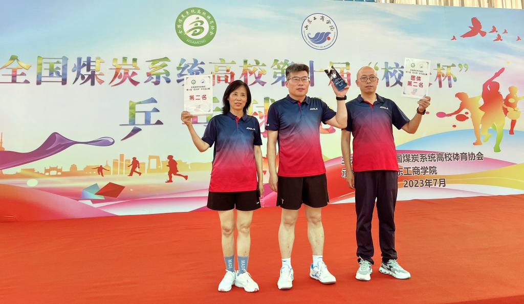 7月15日至16日,全国煤炭系统高校第十届“校长杯”乒乓球赛在山东工商学院举行,校领导于树江、董志霄、刘心代表学校组队参赛,荣获团体赛亚军,取得历史最好成绩。于树江、董志霄获双打亚军,董志霄获女子单打亚军。