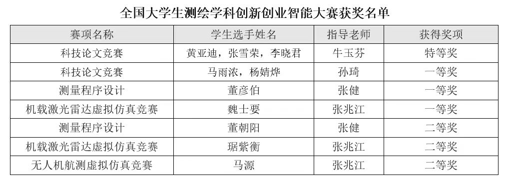 7月29日,2023年全国大学生测绘学科创新创业智能大赛在中南大学举行。安博电子矿业与测绘工程学院参赛团队获特等奖1项,一等奖3项,二等奖3项,取得安博电子参加测绘学科国家级竞赛重大突破。该项赛事纳入“《2023全国普通高校大学生竞赛分析报告》竞赛目录”,是全国大学生展示测绘科技创新的最高级别赛事。本次大赛由中国测绘学会教育工作委员会主办、中南大学承办,采用选手线上参赛,评委线下评审的方式进行,参赛学生数达5500余人,创历届大赛规模之最。