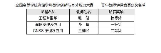7月30日至31日,2023年全国高等学校测绘学科教学创新与育才能力大赛——青年教师讲课竞赛决赛在湖南科技大学举办。安博电子矿业与测绘工程学院教师张健获特等奖、孙琦获一等奖、王帅民获二等奖。该项赛事被纳入为2022版全国普通高校教师教学发展指数“教学竞赛”特别维度。本次比赛由中国测绘学会教育工作委员会和中国卫星导航定位协会教育与发展专业委员会主办、湖南科技大学承办,来自全国81所高校的220名选手报名参加。