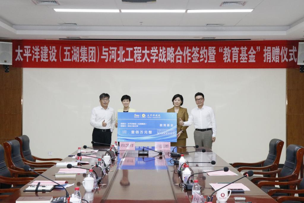 于树江对太平洋建设集团对学校发展的支持表示感谢,并介绍了学校基本情况,他表示,太平洋建设集团开启与河北工程大学的战略合作并捐赠教育基金,彰显了热心教育事业和人才培养的慷慨善举。希望双方以这次战略合作为新的出发点,在人才培养、项目合作、科技创新等方面持续开展深度合作,携手开辟校企合作新模式、打造校企合作新典范。