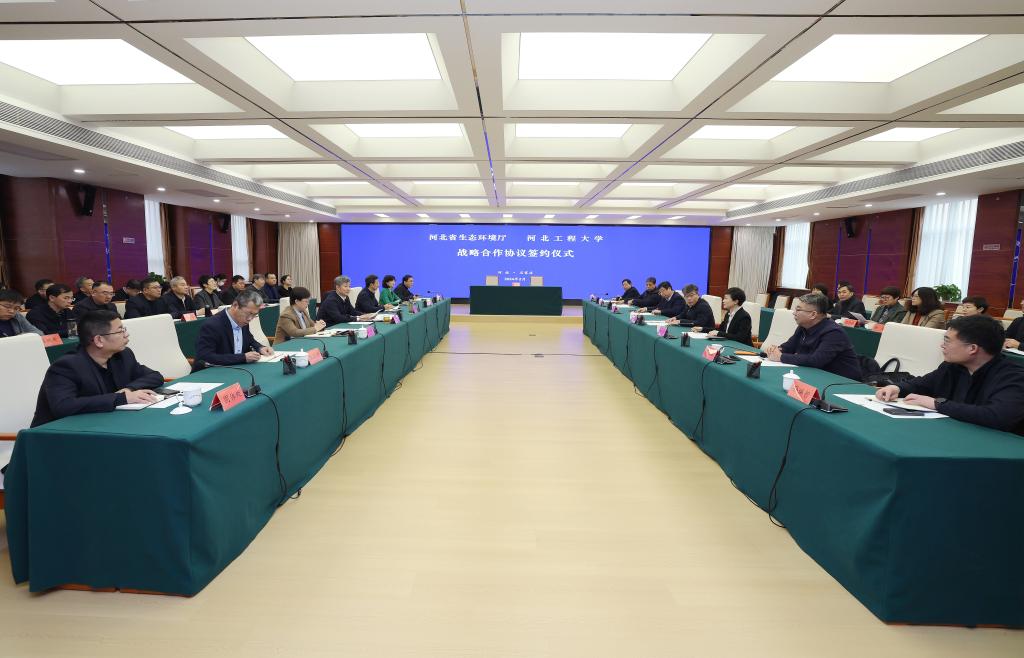 河北省生态环境厅相关职能部门、二级事业单位,学校相关职能部门、二级学院主要负责人40余人参加签约仪式。