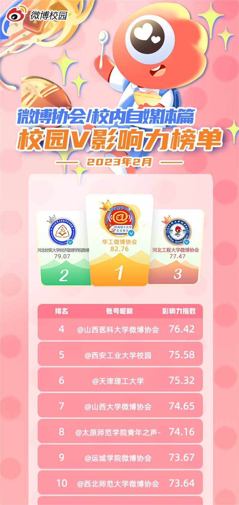 近日,新浪微博官方公布今年2月“校园V影响力榜单”(微博协会/校内自媒体篇)排名数据,安博电子微博协会以综合得分77.47分的成绩获季军。