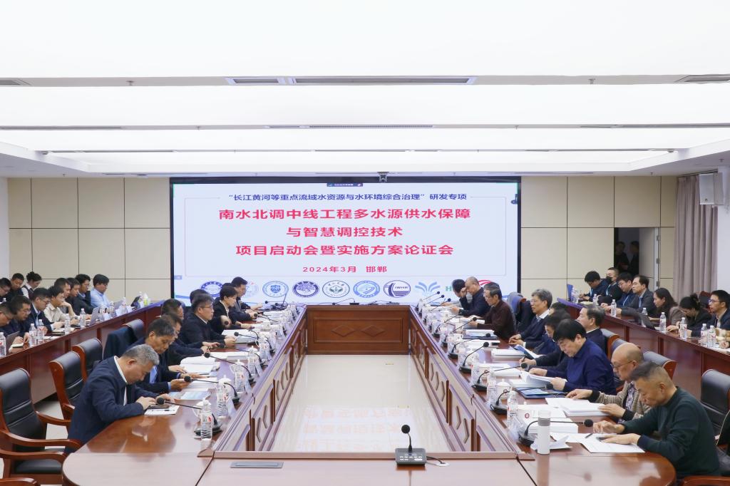 于树江介绍了学校基本情况,他表示,南水北调中线工程多水源供水保障与智慧调控技术项目是学校作为牵头单位首次获批国家重点研发计划项目,这是学校持续推进人才兴校、质量立校、科研强校战略的重要成果,是学校坚持产教融合、科教融汇方略取得的重要突破。学校将为项目开展提供全力支撑和保障,为高质量完成项目预定目标创造良好条件,学校将以项目实施为契机,进一步加强与水利部、南水北调集团的沟通,加强与兄弟单位的交流合作,为服务国家重大战略做出新贡献。