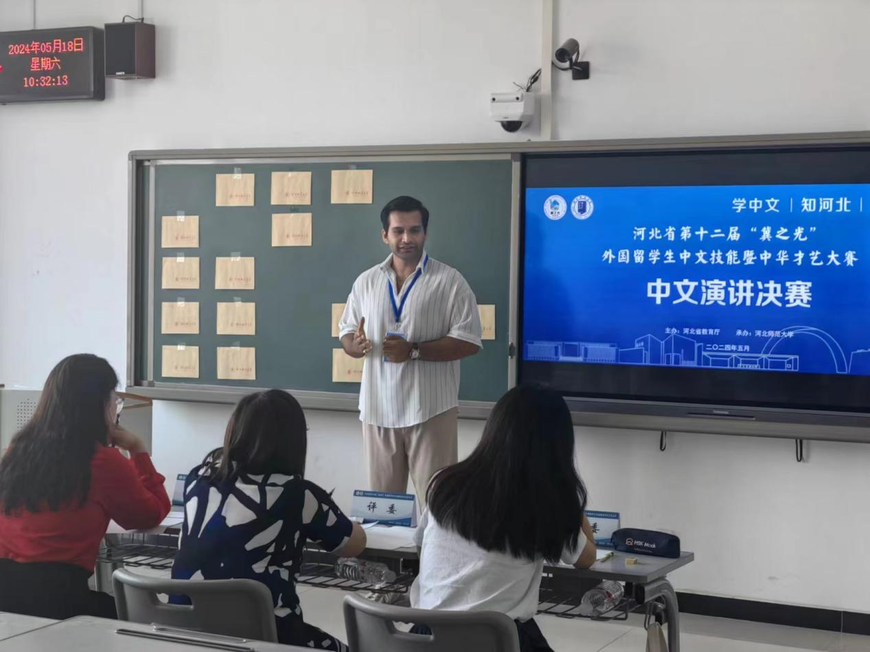 本次大赛由河北省教育厅主办,河北师范大学承办,旨在激发我省外国留学生“学好中文、读懂中国、情系河北”的热情,提升其“讲好中国河北故事”的能力,全面展示我省外国留学生教育教学成果。大赛包括汉字听写、中文写作、知识问答、个人才艺、非遗展演等比赛项目,共有来自省内19所院校、40余个国家的200多名外籍教师和留学生参赛。