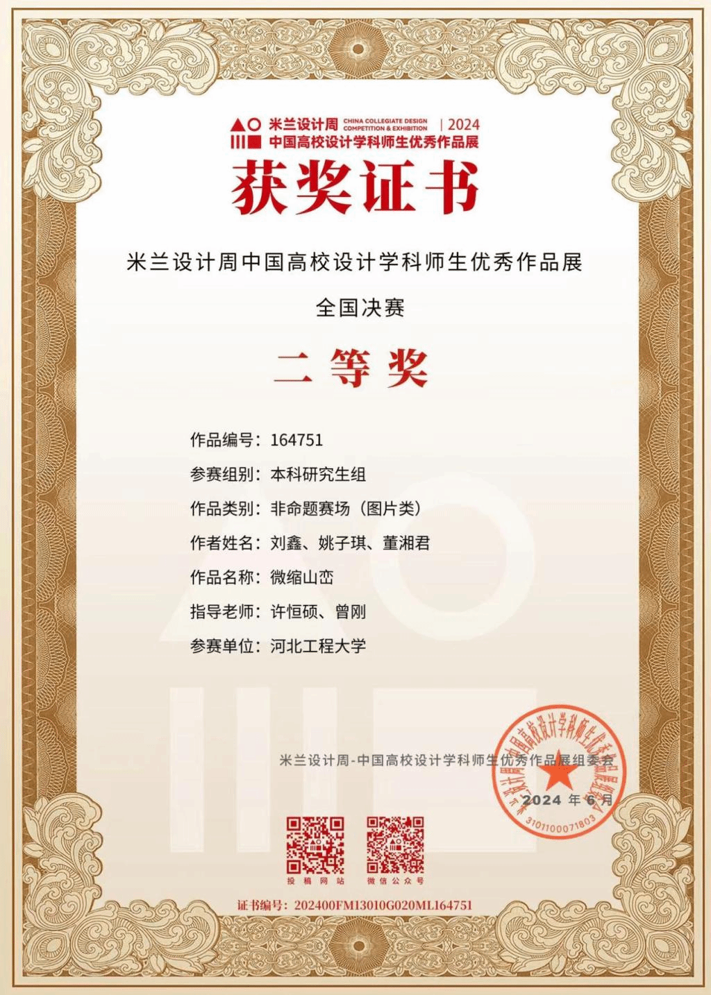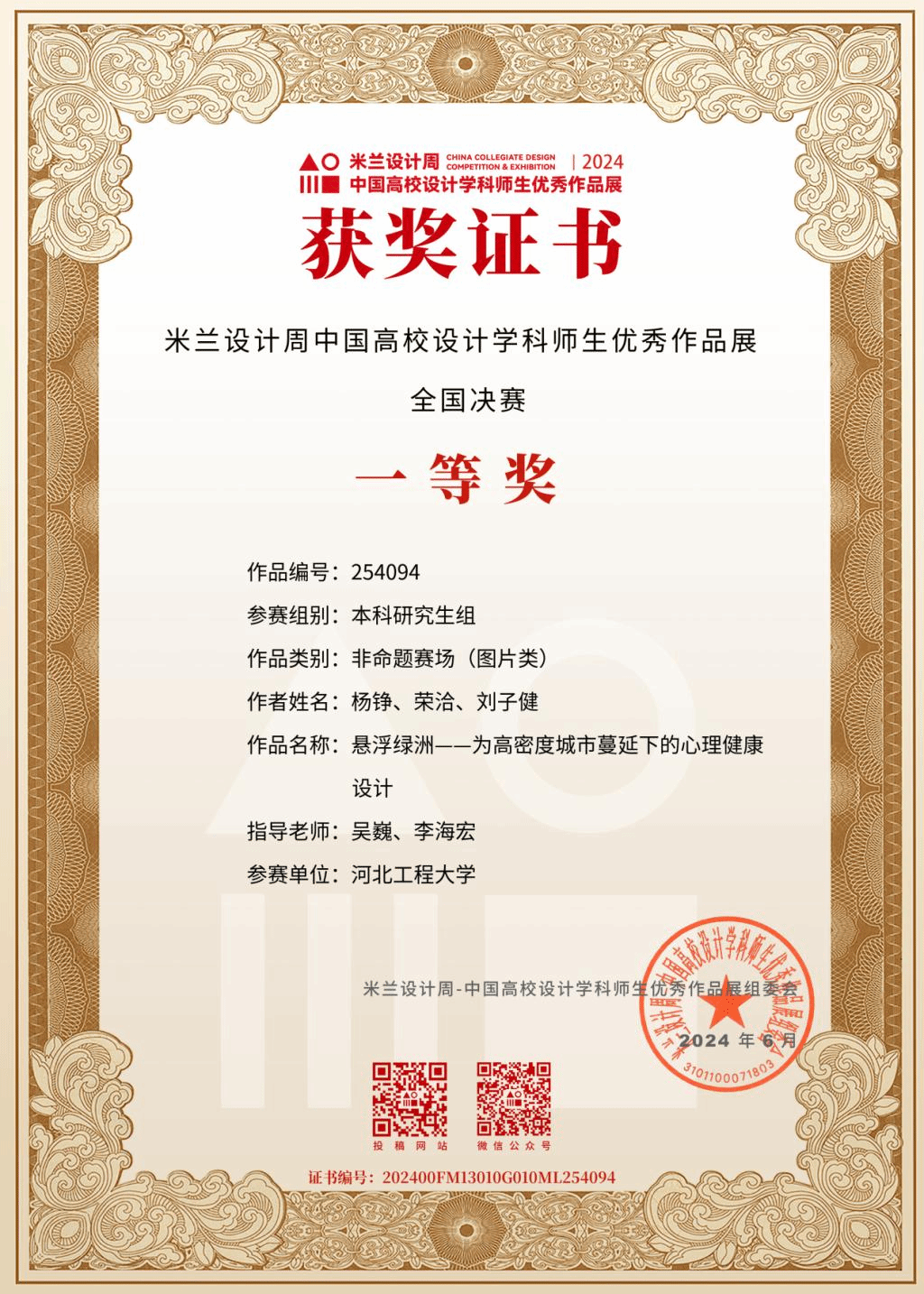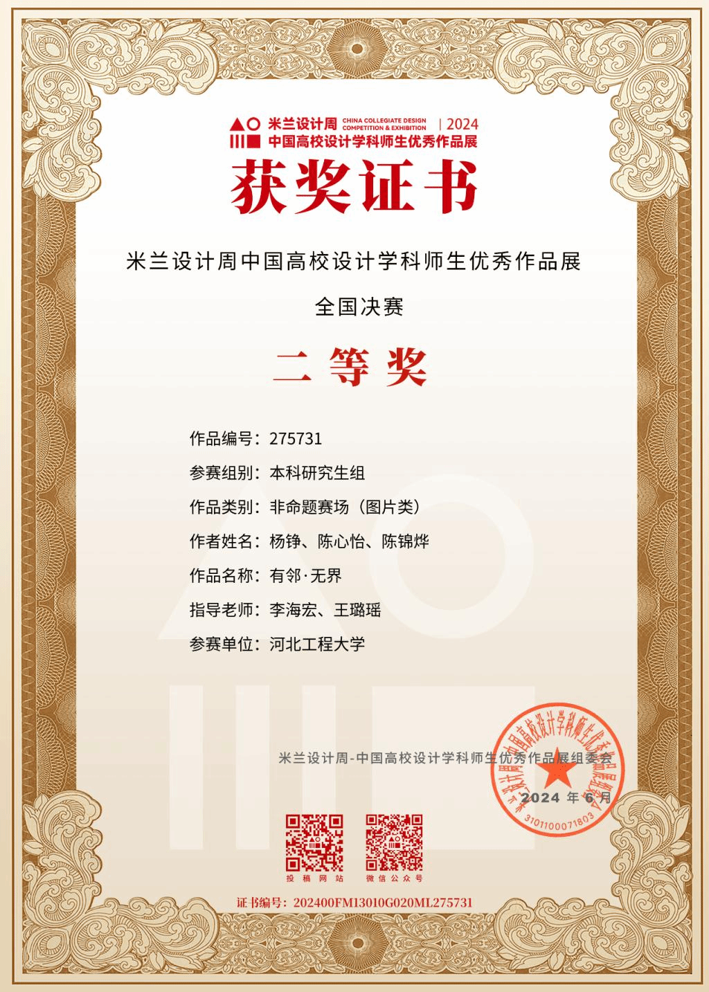 近日,2024年米兰设计周·中国高校设计学科师生优秀作品展全国决赛落下帷幕。安博电子建筑与艺术学院学生杨铮、刘子健的作品《悬浮绿洲》(指导老师:吴巍、李海宏)获国赛一等奖,学生杨铮、陈心怡、陈锦烨的作品《有邻·无界》(指导教师:李海宏、王璐瑶)和学生刘鑫、姚子琪、董湘君的作品《微缩山峦》(指导教师:许恒硕、曾刚)获国赛二等奖。