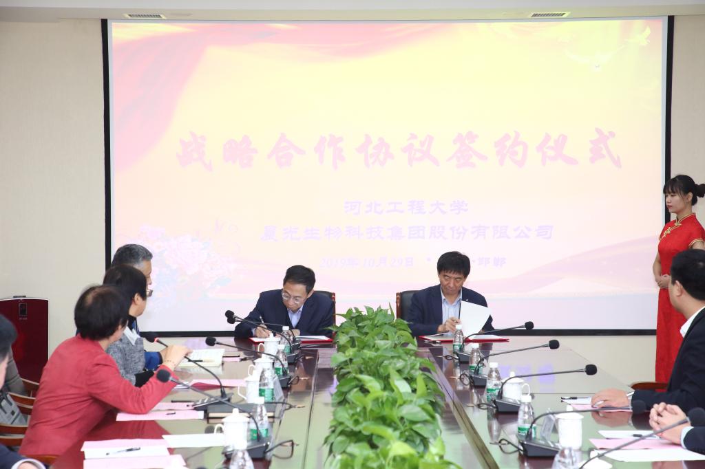 颁奖仪式结束后,双方签订校企战略合作框架协议,哈明虎代表学校致辞,并介绍了学校的发展情况。双方表示,将通过产学研深度合作,形成协同创新体,实现资源共享和优势互补,促进双方共同发展。双方将围绕天然植物提取、农产品精深加工领域开展合作,相互开放科技资源平台,汇聚双方人力资源,共建学科团队,在学科建设、人才培养、科学研究、技术转移与服务等方面开展合作,提升双方科技创新能力,服务国家创新驱动发展战略。双方成立了校企联合研究院,并举行了揭牌仪式。此次战略合作框架协议的签署标志着校企双方站在了未来合作的新起点,迈向了校企合作的新高度。