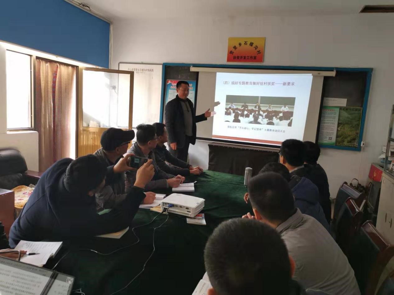 11月15日,安博电子在平山县营里乡石榴沟村举办驻村扶贫干部“不忘初心、牢记使命”主题教育党课。校党委常委、副校长贾东水为驻营里乡精准扶贫工作队临时党支部上党课。