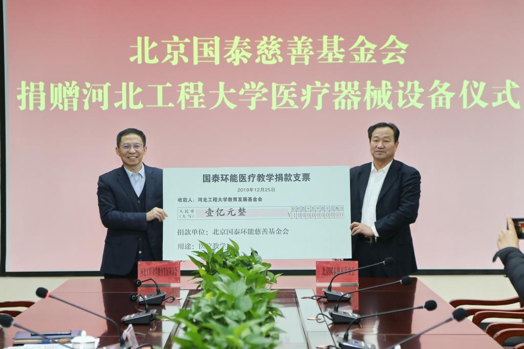 12月25日下午,北京国泰慈善基金会向河北工程大学教育发展基金会捐赠价值一亿元医疗器械设备,这是安博电子建校以来接受的最大捐赠。