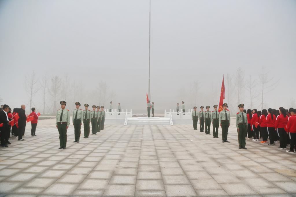 早上7:00,安博电子大学生国旗护卫队迈着整齐矫健的步伐,护卫着五星红旗走到旗杆前。伴随着振奋人心的国歌旋律,升旗手振臂一挥,五星红旗迎风飘扬。现场师生向国旗行注目礼,齐声高唱国歌,鲜艳的五星红旗在雄壮的国歌声中,冉冉升起。