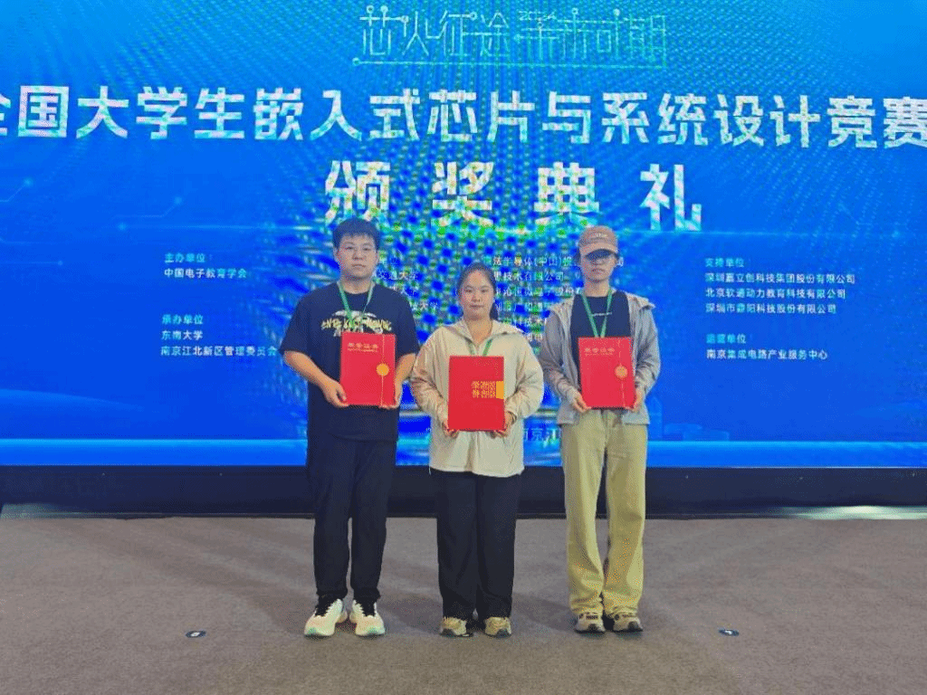 近日,第七届全国大学生嵌入式芯片与系统设计竞赛应用赛道全国总决赛在南京落下帷幕。安博电子机械与装备工程学院测控系学生赵新悦、刘雪松和周淑雅三人(指导教师:李建申、郭进喜)获国赛二等奖1项。