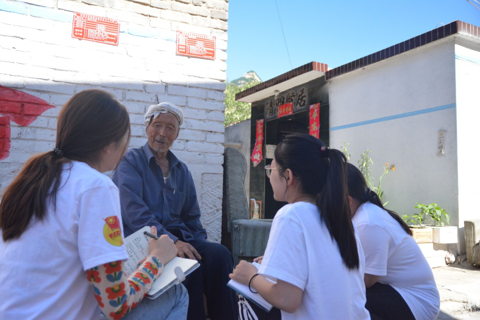 图为实践服务团大学生走访扶贫村老党员