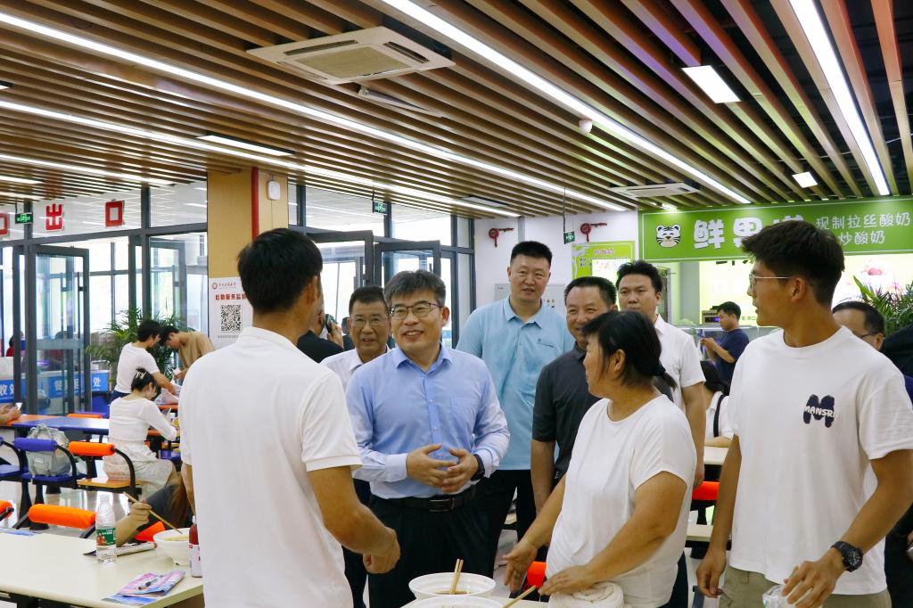 在学生公寓和学生食堂,于树江与报到新生、家长亲切交谈,欢迎新生同学们来到河北工程大学求学,勉励大家要积极适应全新的学习和生活环境,珍惜大学时光、好好学习,积极参与体育锻炼,增强体质,做德智体美劳全面发展的时代新人。他认真听取了家长们的意见和建议,并表示,感谢家长们对学校工作的关注和支持,请家长放心,学校会千方百计地创造良好的学习生活条件,让学生能够学得安心、住得舒心、吃得放心。