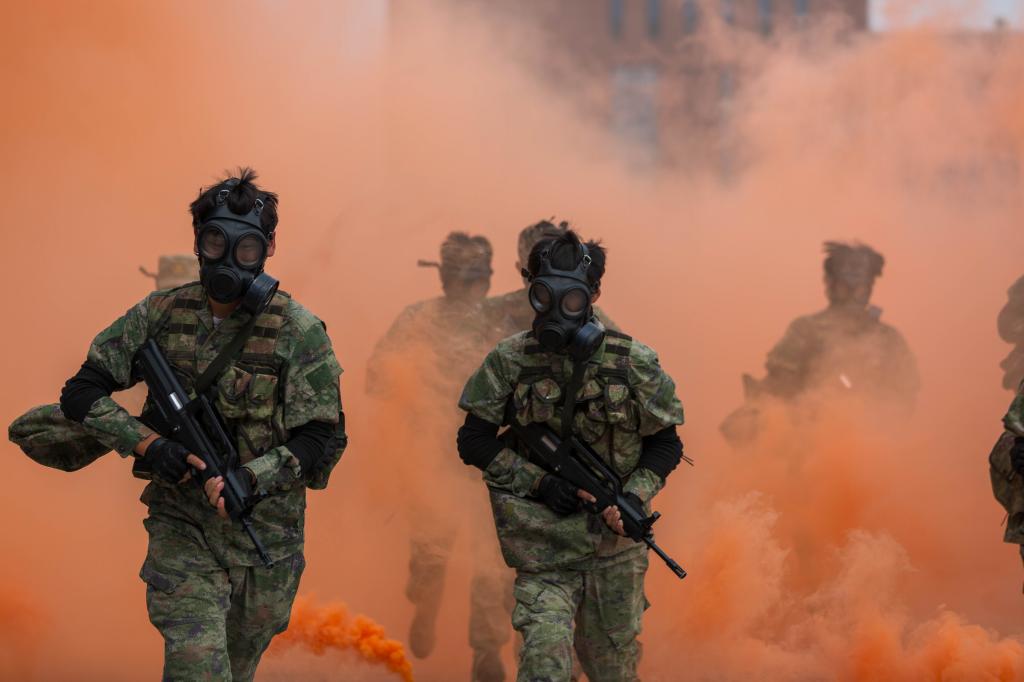 70名教官与5799名参训学生展示了班组战术、自救互救、刺杀操等科目的训练成果,并举行了行军拉练。