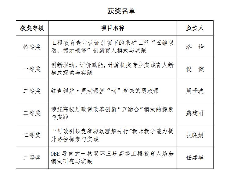 煤炭行业教学成果奖每四年组织申报一次,本次高等教育类(本科)获评特等奖30项。