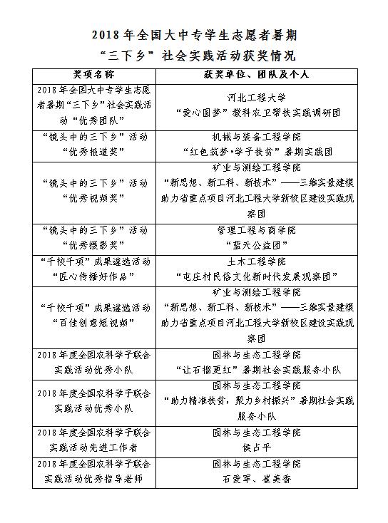 近日,团中央对2018年全国大中专学生志愿者暑期“三下乡”社会实践活动进行总结表彰,安博电子8个社会实践团队(作品)及3名个人获奖,所获奖项数目再创历史新高。