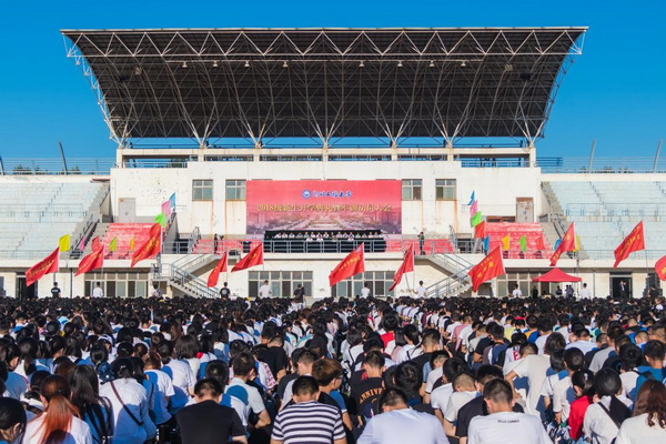 | 图为2018级新生开学典礼暨军训动员会现场 |