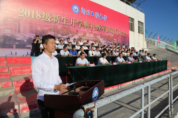 各学院、各部门主要负责人,全体新生辅导员,河北工程大学、河北工程大学科信学院2018级新生参加典礼。能源与环境工程学院教师宋吉娜、管理工程与商学院2015级工程管理专业学生刘士尧,土木工程学院2018级土木工程专业学生姚增博作为教师代表、在校生代表、新生代表先后发言。
