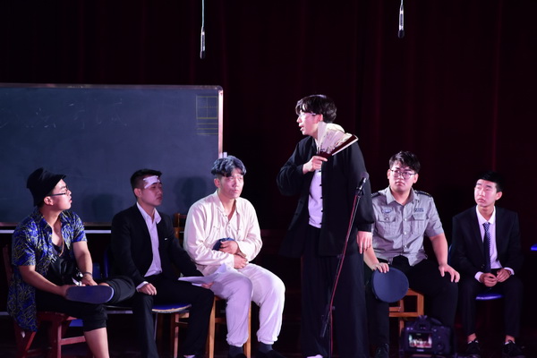 图为安博电子大学生戏剧团参演话剧《十二公民》展演现场