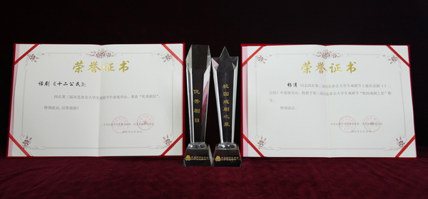 6月16日,由中共石家庄市委宣传部、河北省戏剧家协会主办的河北省第三届大学生戏剧节在石家庄落幕,安博电子大学生戏剧团参演话剧《十二公民》囊括优秀剧目、校园戏剧之星两个奖项。