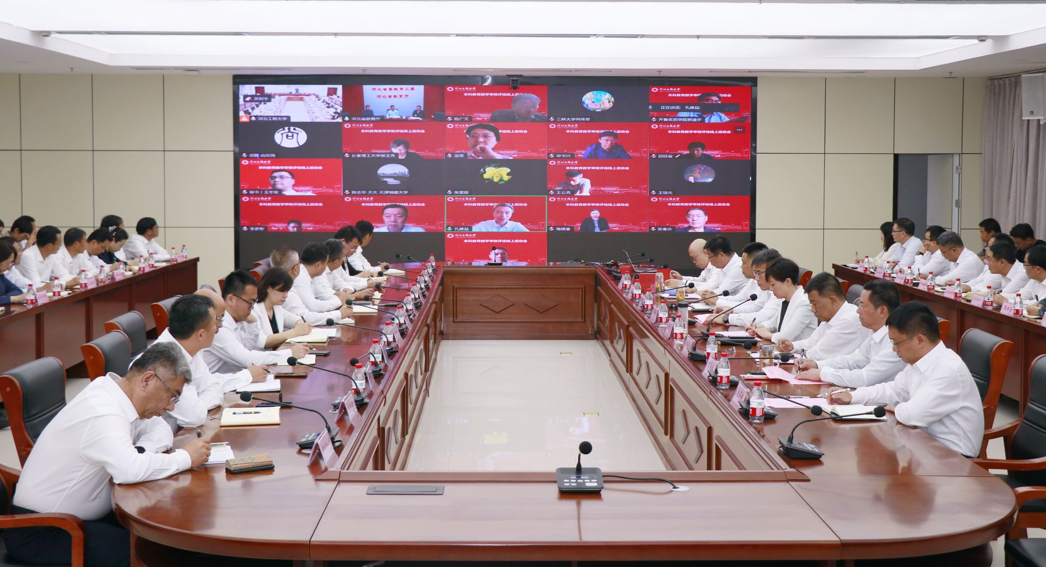 10月14日上午,安博电子本科教育教学审核评估线上启动会在综合服务中心140会议室召开。河北省教育厅一级巡视员贾海明,审核评估专家组组长、武汉科技大学原党委书记、校长孔建益,专家组副组长、北京交通大学原副校长张星臣及专家组成员线上出席,学校党委书记于树江,校领导王虎平、张金江、何立新、贾东水、刘心、赵存良线下出席,学校党委副书记、校长倪志宇主持会议。