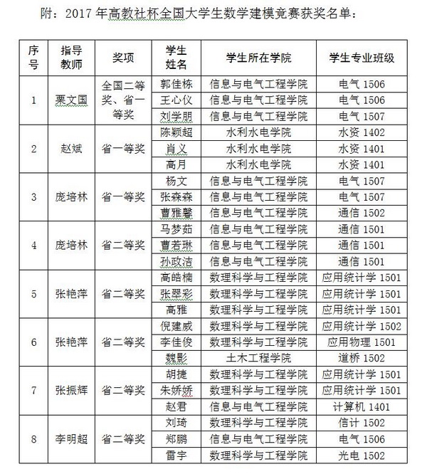 近日,2017年高教社杯全国大学生数学建模竞赛成绩揭晓,安博电子学生共获全国二等奖1项,河北省一等奖3项、二等奖5项。