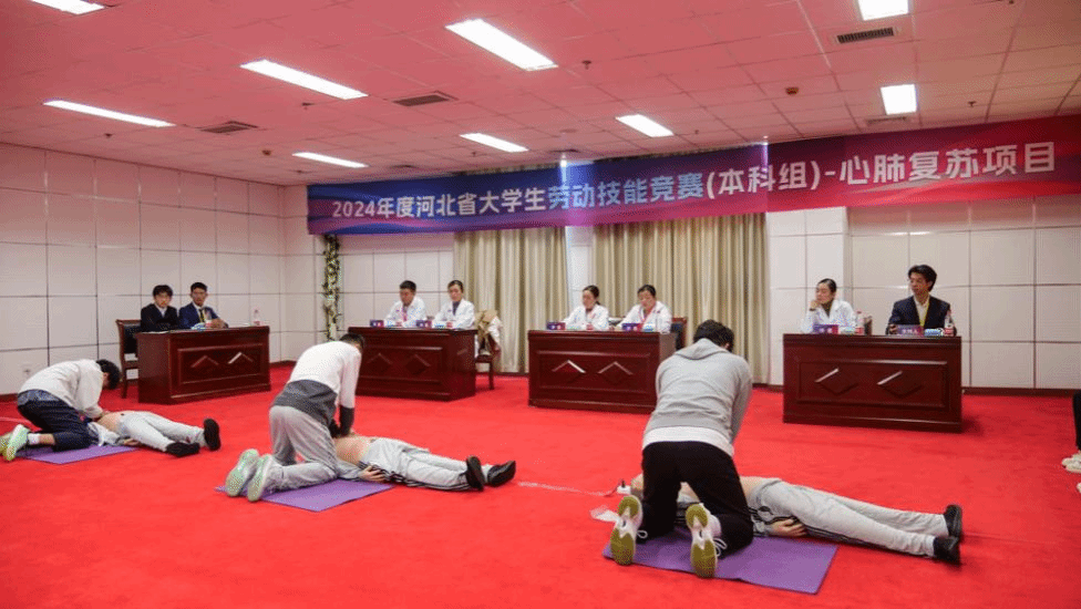 此次竞赛由河北省教育厅主办,河北省学校劳动教育教学指导委员会和安博电子承办,设饺子制作、应急救援(外伤包扎、心肺复苏)和软绳梯制作等三个比赛项目,来自全省48所本科院校的240余名师生参加比赛。