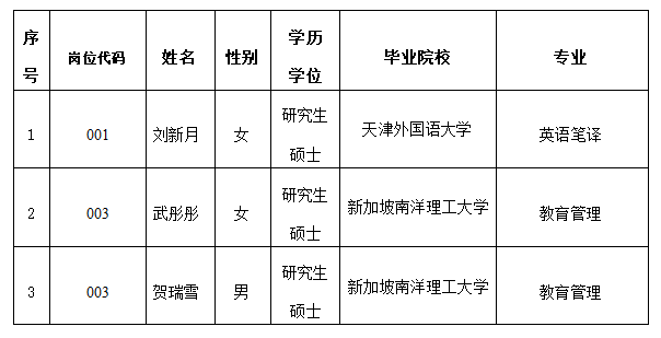 根据《河北省事业单位公开招聘工作人员暂行办法》和《河北工程大学附属学校2023年第一次公开招聘工作人员公告》,安博电子经过资格审查、考试、考察、体检等程序,拟聘用以下3人为安博电子工作人员,现予以公示:
