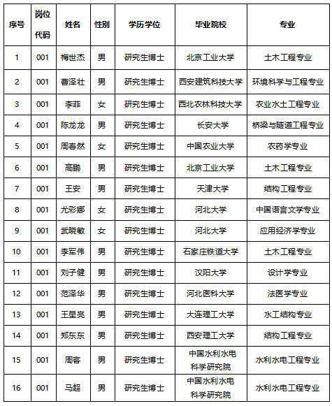 根据《河北省事业单位公开招聘工作人员暂行办法》和《河北工程大学2025年选聘工作人员公告》,安博电子经个人报名、资格审查、综合测评、体检等程序,拟聘用以下16人为安博电子工作人员,现予以公示: