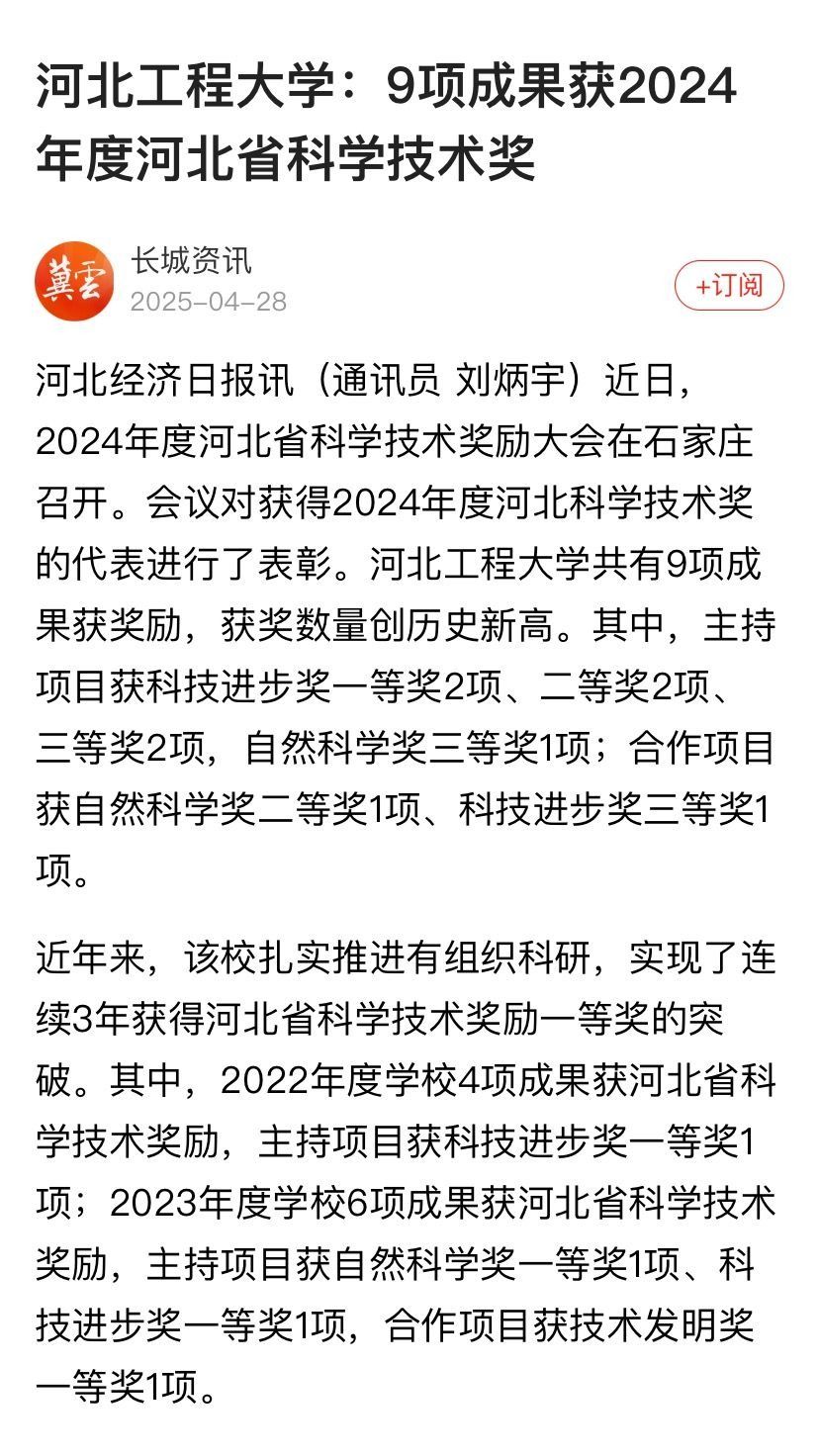 河北工程大学:9项成果获2024年度河北省科学技术奖