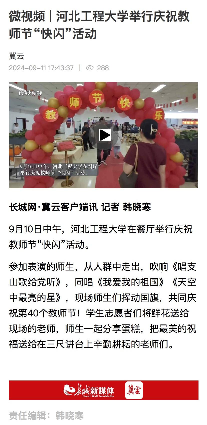 河北工程大学举行庆祝教师节“快闪”活动