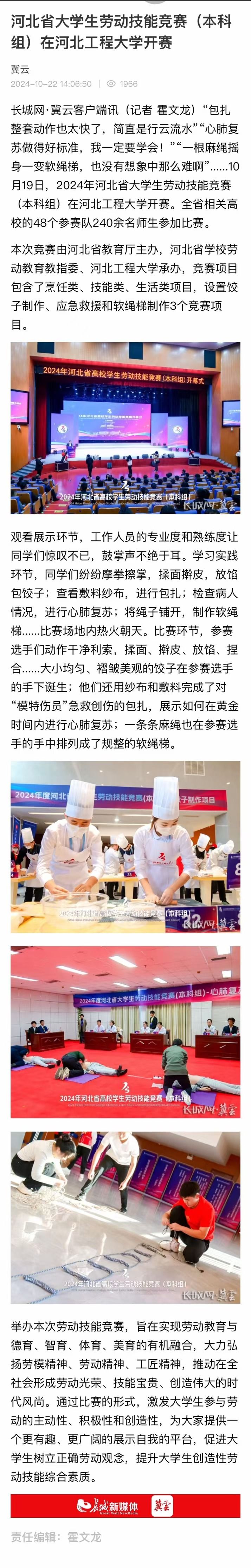 河北省大学生劳动技能竞赛(本科组)在河北工程大学开赛