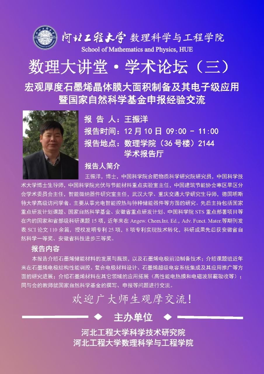 数理学院-宏观厚度石墨烯晶体膜大面积制备及其电子级应用暨国家自然科学基金申报经验交流